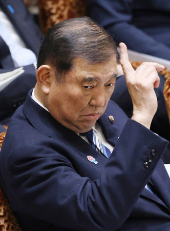 〔写真説明〕参院決算委員会で挙手する石破茂首相=7日午後、国会内