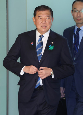 〔写真説明〕首相官邸に入る石破茂首相=15日、東京・永田町