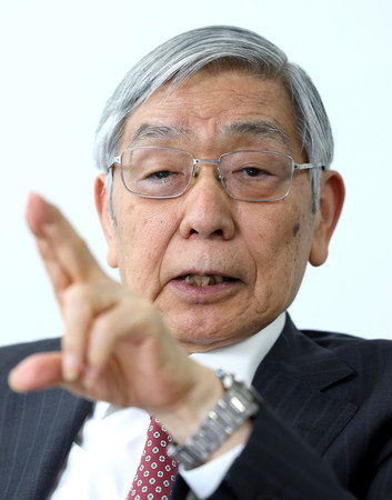 〔写真説明〕インタビューに答える黒田東彦前日銀総裁=4月28日、東京都港区