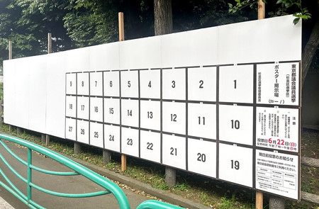 〔写真説明〕東京都議選を前に設置された候補者のポスター掲示板=27日午前、東京都渋谷区