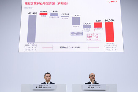 トランプ関税の影響額は、営業利益ベースで1兆4500億円の見通し。為替変動や原材料価格の上昇によるマイナス影響が従来予想から縮小するほか、コスト削減や販売車種構成の見直しなどにより、約9000億円の利益改善効果を見込んだ。