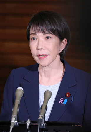 〔写真説明〕記者団の取材に応じる高市早苗首相=14日午後、首相官邸