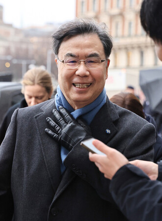 〔写真説明〕日本大使館主催の祝賀会を前に、取材に応じる大阪大の坂口志文特任教授=9日、ストックホルム