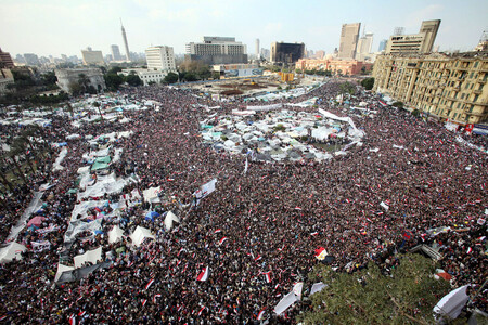 〔写真説明〕エジプト・カイロの中心部で行われた大規模デモ=2011年2月(EPA時事)