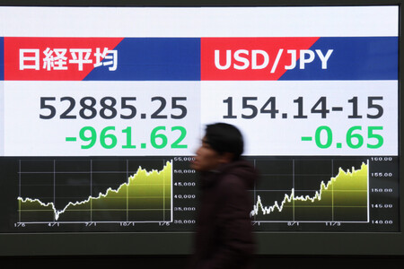 東京株式市場は、為替の円高進行を嫌気した売りが優勢となった。東証プライム市場のうち8割を超える銘柄が値下がりし、日経平均株価は一時、前週末比1100円超急落する場面もあった。終値は961円62銭安の5万2885円25銭で、大幅反落した。