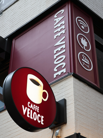 〔写真説明〕コーヒーチェーン「カフェ・ベローチェ」の看板
