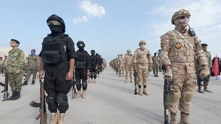 〔写真説明〕イランの精鋭軍事組織「革命防衛隊」の兵士ら=イラン南部のペルシャ湾岸(同隊が2月16日公開、詳細な撮影地は不明)(EPA時事)