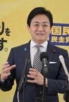 〔写真説明〕北海道寿都町長選に立候補し、第一声を上げる越前谷由樹氏=21日午前、同町