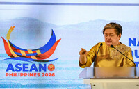 〔写真説明〕23日、ブリュッセルで開かれた会合に先立ち姿を見せたミシェル欧州連合(EU)大統領(AFP時事)