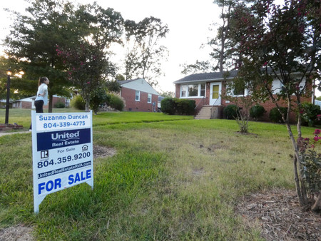 〔写真説明〕米国の住宅街にある売家=11日、米南部バージニア州リッチモンド