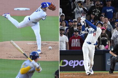 〔写真説明〕ナ・リーグ優勝決定シリーズ第4戦、ブルワーズ戦に先発し、勝利投手となったドジャースの大谷(写真左)。同右は7回、この日3本目となるソロ本塁打を放つ大谷=17日、ロサンゼルス