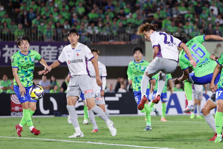 明治安田J1リーグは19日、神奈川・レモンガススタジアム平塚で第34節の残り1試合が行われ、京都は湘南と1―1で引き分けた。勝ち点61で3位となり、首位鹿島との差は5。19位湘南の連敗は7で止まったが、次節にJ2降格が決まる可能性がある。【時事通信社】 〔写真説明〕後半終了間際、同点ゴールを決める京都の須貝(右から2人目)=19日、レモンS