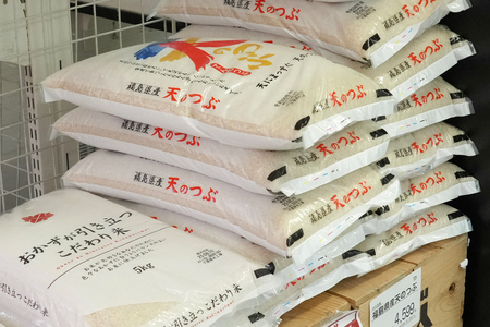 〔写真説明〕東京都内のスーパーに陳列されたコメ=資料(AFP時事)