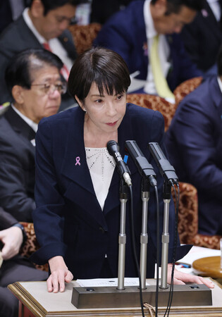 〔写真説明〕参院予算委員会で、国民民主党の浜野喜史総務会長の質問に答弁する高市早苗首相=13日午前、国会内