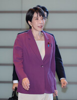 〔写真説明〕首相官邸に入る高市早苗首相=4日午後、東京・永田町