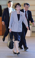 〔写真説明〕首相官邸に入る高市早苗首相=5日午前、東京・永田町