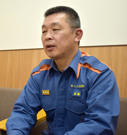 〔写真説明〕取材に応じる小諸消防署長の高橋明則さん=2025年12月25日、長野県小諸市