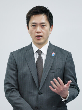 〔写真説明〕取材に応じる大阪府の吉村洋文知事=16日午後、同府庁
