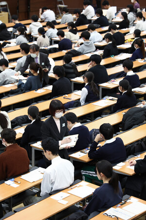 〔写真説明〕大学入学共通テストに臨む受験生=17日午前、東京都文京区