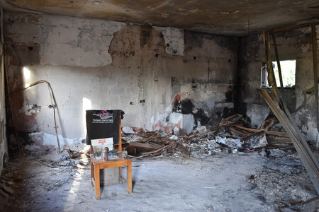 約400人が生活していたニルオズでは奇襲により、拉致された人も含めて70人が死亡した。220軒の家屋のうち、被害を免れたのは7軒のみ。多くは焼けて廃虚と化し、住民が集う食堂には銃弾が貫通した跡が残されていた。