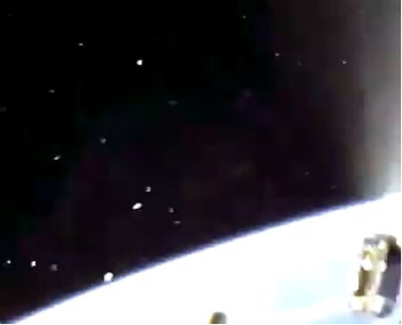 〔写真説明〕H3ロケット8号機の第1段分離時に機体搭載カメラから撮影された写真。右下は落下していく衛星「みちびき5号」(JAXA提供)