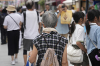 〔写真説明〕高齢者らが多く集まる巣鴨の地蔵通り商店街を歩く人々=2024年9月、東京都豊島区