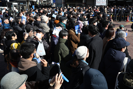 〔写真説明〕候補者の演説に集まる聴衆=1日、東京都渋谷区