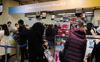 〔写真説明〕松屋銀座のバレンタイン催事場でチョコを買い求める人たち=4日午後、東京都中央区