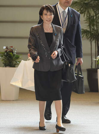 〔写真説明〕首相官邸に入る高市早苗首相=16日午前、東京・永田町