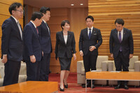 〔写真説明〕閣議に臨む高市早苗首相(右から3人目)=20日午前、首相官邸