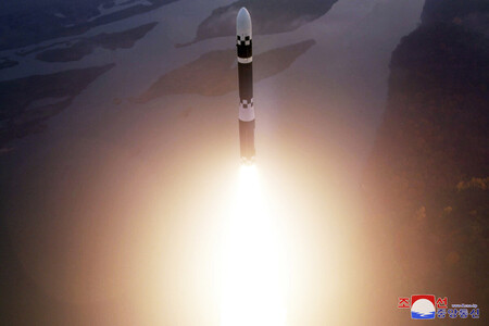 〔写真説明〕北朝鮮の大陸間弾道ミサイル(ICBM)=2024年10月、撮影場所不明(朝鮮中央通信が配信)(AFP時事)