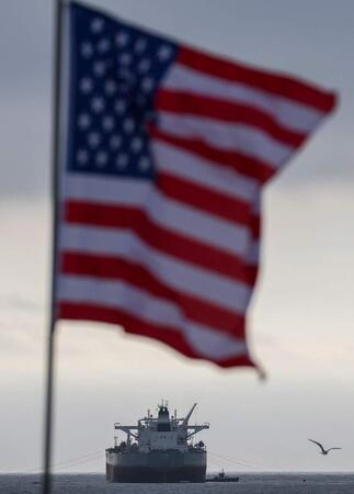 〔写真説明〕4日、米西部カリフォルニア沖に停泊中の原油タンカー(AFP時事)