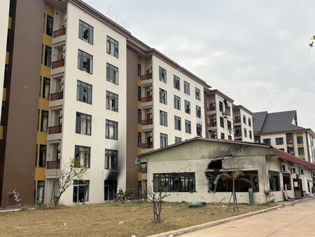 80万平方メートルの敷地には約160棟の建物が林立。タイ軍関係者によると、攻撃前に多くの人がバスで立ち去る様子が目撃された。建物内には衣服や食べかけの食事が残されたままになっていた。