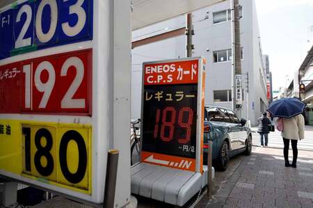 〔写真説明〕16日、東京都内のガソリンスタンドの店頭(EPA時事)jpp090110791.jpg