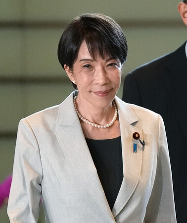 〔写真説明〕首相官邸に入る高市早苗首相=7日午前、東京・永田町