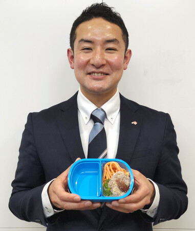 〔写真説明〕味の素が試験販売した幼児向けの弁当用冷凍おかずセット「Pitamo」と開発者=東京都中央区