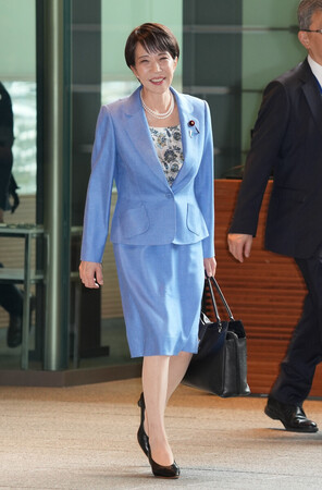〔写真説明〕首相官邸に入る高市早苗首相=13日、東京・永田町