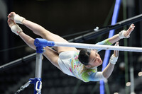 〔写真説明〕全日本体操女子決勝、段違い平行棒を演技する西山実沙=18日、群馬・高崎アリーナ