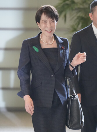 〔写真説明〕首相官邸に入る高市早苗首相=20日午前、東京・永田町