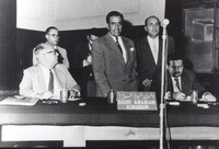 〔写真説明〕1960年9月、バグダッドで開かれた主要産油5カ国の会合に参加するサウジアラビア代表団トップのアブドラ・タリキ氏(中央)。4日間の協議を経て、石油輸出国機構(OPEC)の結成が決まった(AFP時事)