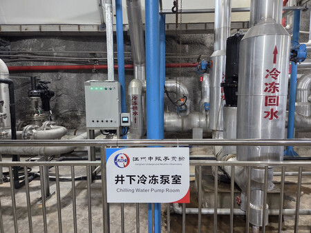 地下700メートルにある観測エリアには、トロッコ列車に乗って向かう。報道陣には、ニュートリノを検出する最新装置の真上にある部屋や冷却設備が公開された。JUNOはこの日、ニュートリノの質量を測定するのに必要な観測値を絞り込むことに成功したと明らかにした。