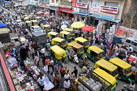 〔写真説明〕にぎわうインド南部ベンガルールの市場=10月19日(AFP時事)