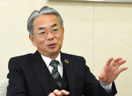 〔写真説明〕インタビューに応じる関西みらい銀行の西山和宏社長=3日午前、大阪市