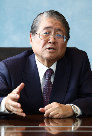 〔写真説明〕インタビューに答えるフーリハン・ローキーの渡辺章博会長=11月12日、東京都千代田区