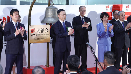 取引終了後の式典には、高市早苗首相がゲストとして登場した。「日本のために最後まで諦めず、走って走って走って走って走り抜いて勝利を勝ち取ります」とあいさつ。サッカー日本代表の森保一監督らと今年の株取引を締めくくる鐘を打ち鳴らした。