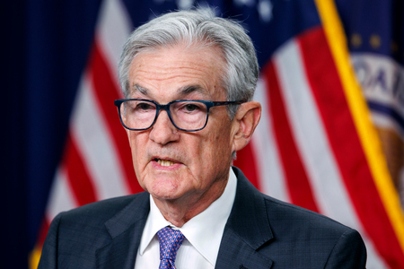 〔写真説明〕米連邦準備制度理事会(FRB)のパウエル議長=2025年12月、ワシントン(EPA時事)