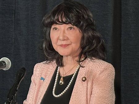 〔写真説明〕12日、米ワシントンで記者団の取材に応じる片山さつき財務相