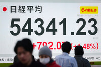 14日午前の東京株式市場の日経平均株価は、5万4413円92銭と前日終値比864円76銭高で終わった。出来高は概算で11億9100万株。