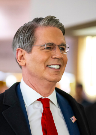 〔写真説明〕ベセント米財務長官=20日、スイス・ダボス(EPA時事)