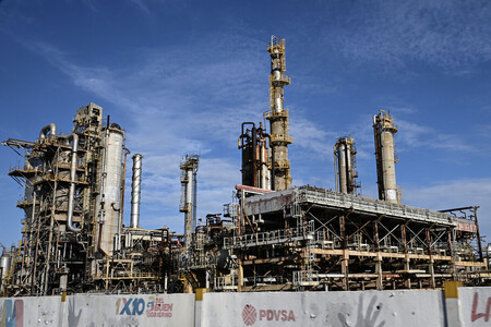 〔写真説明〕ベネズエラ中部カラボボ州の港湾都市プエルトカベジョにある製油所=22日(AFP時事)